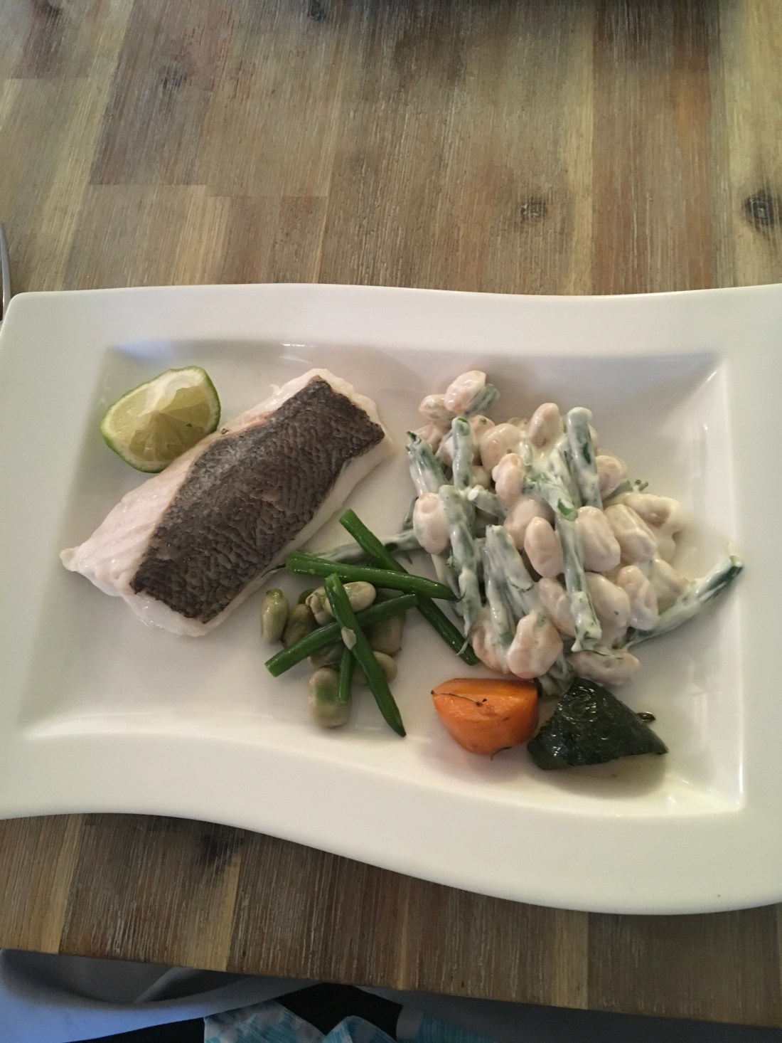 The main is wonderful. Grilled hake is beautifully soft, tender, and cooked to perfection, with a Dijon mayo and butter bean and cold French bean salad; an ideal mix of delicate flavours. The portion control is also spot on, especially as I want to save room for the final course.