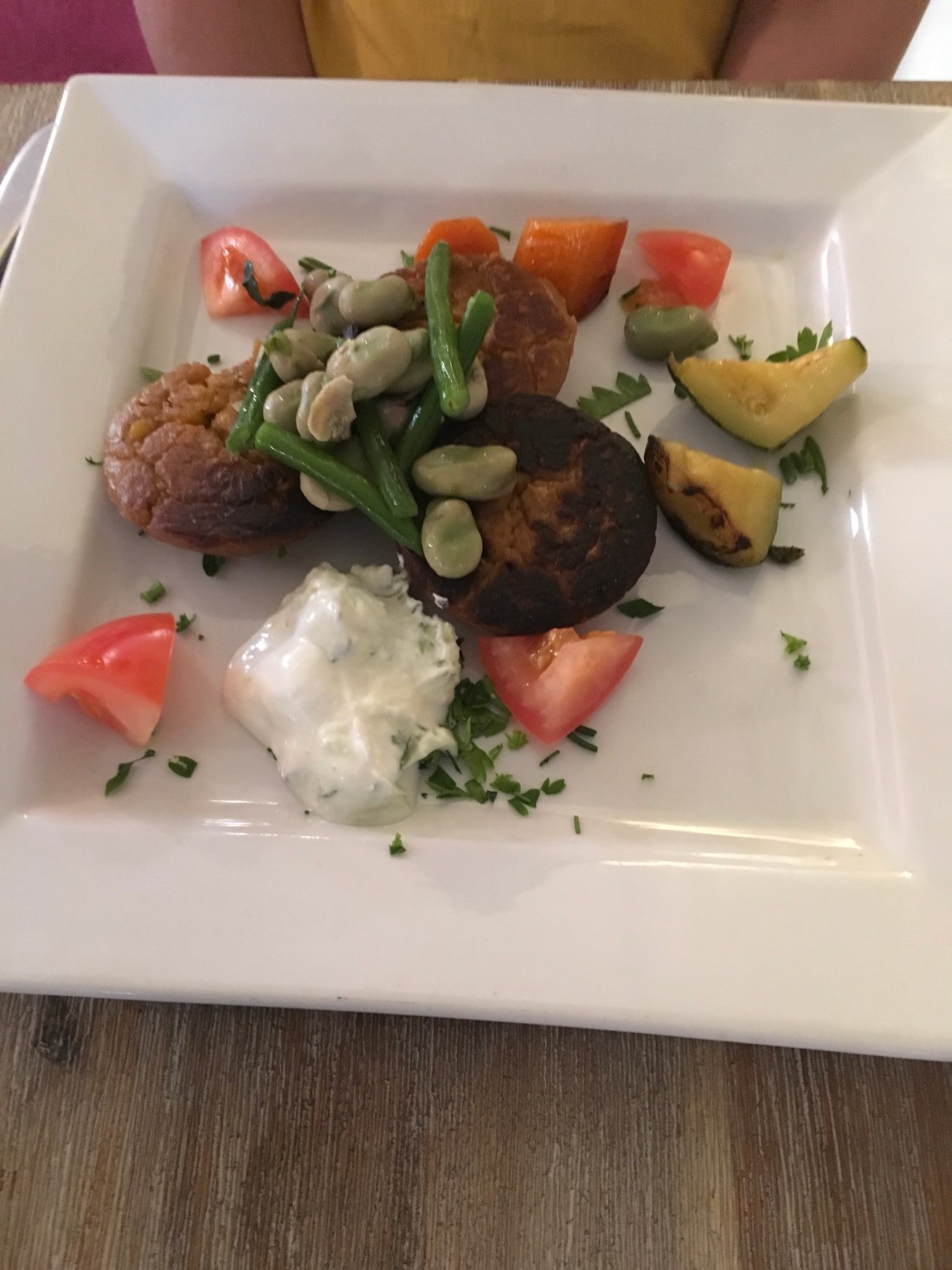 Rachel’s corn and chipotle fritta with tatziki is equally delicious. “It’s got a really nice flavour. I expected it to be crispy for some reason,” she explains. “I like the fact it doesn’t sit heavy.”