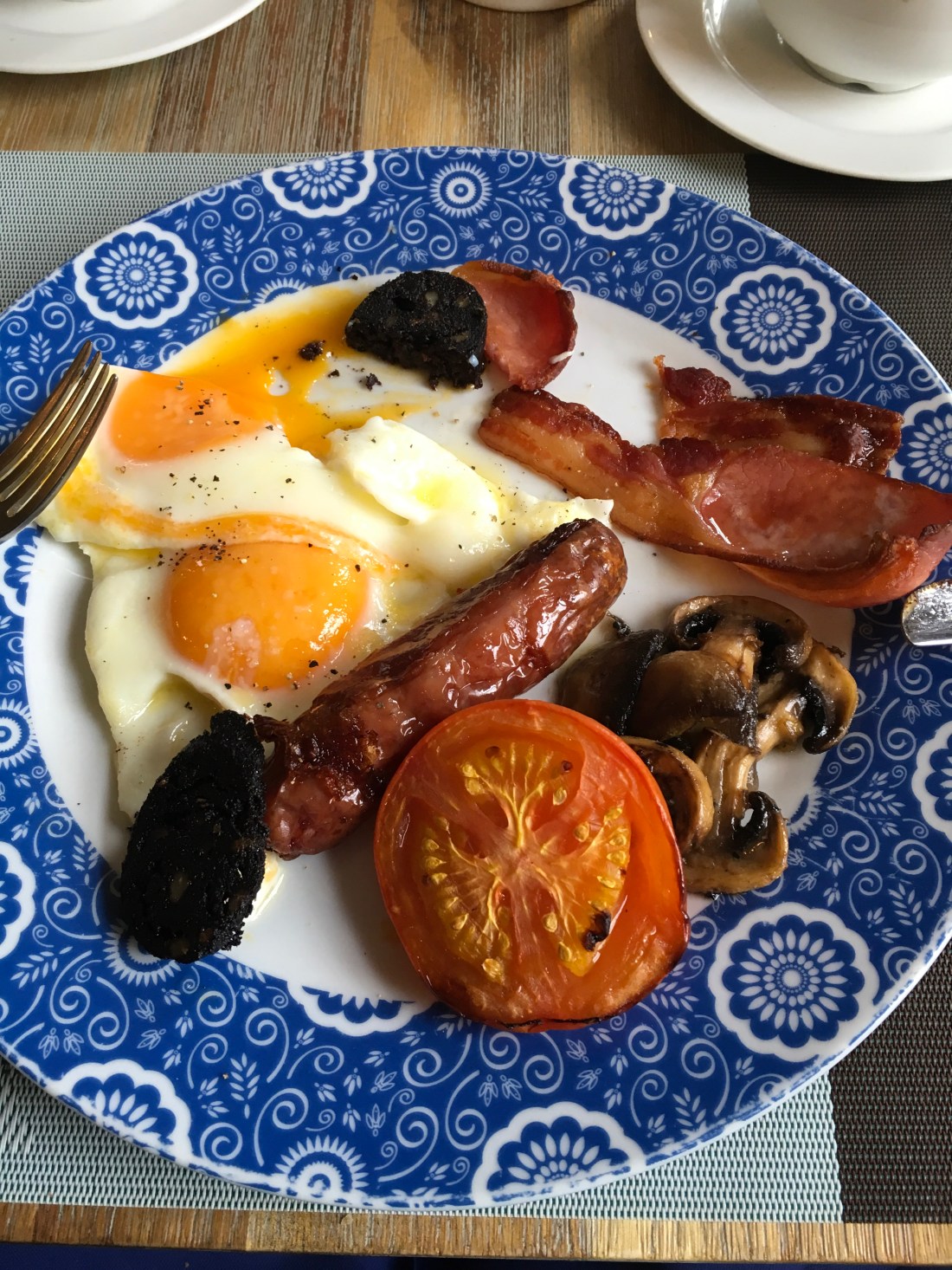 Grabbing a seat by the window, we enjoy cereal from the ’help yourself’ buffet area, and I order a full English.