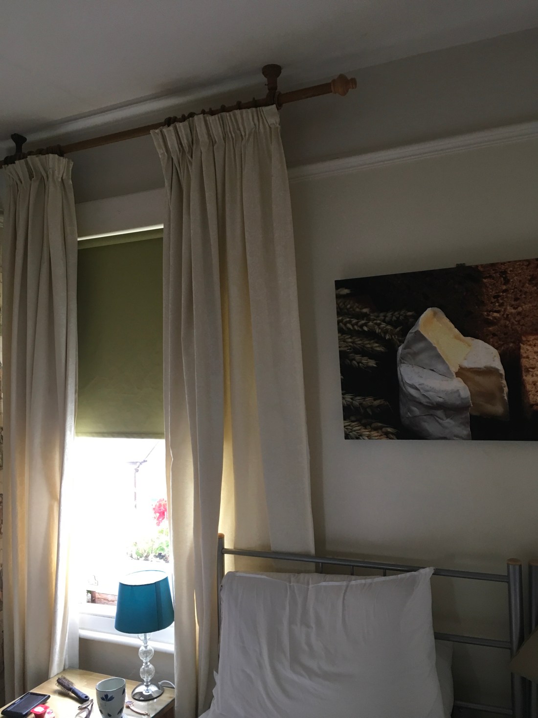 Check-in doesn’t take long once we’ve rung the bell. Owner and head chef Mark Hartstone greets us and takes our bags up to our room, Gold Hill. All of the rooms are named after cheeses. As I have a passion for Cheddar and most varieties (unless they’re ’radioactive yellow’ processed slices you get in the States), I like the theme, and the cheese-centric photo over the double bed. Wallace and Gromit would be in their element.