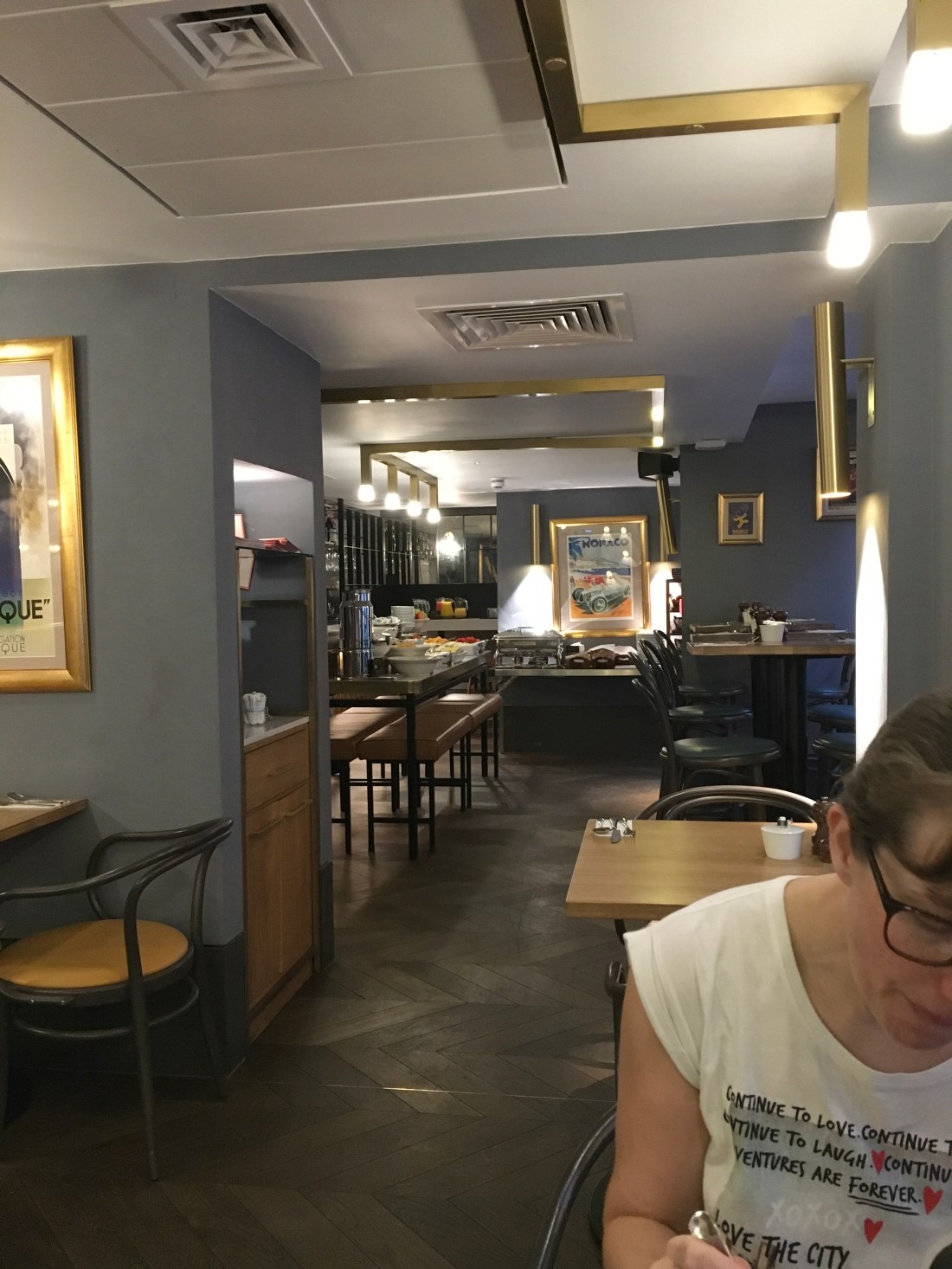 Breakfast, which is served from 7am in the hotel’s elegant cafe/dining area, is a help- yourself feast of staples, from cereals, to croissants, bacon, scrambled eggs, beans, bacon and terrific sausages. The perfect set up for a very long day ahead.